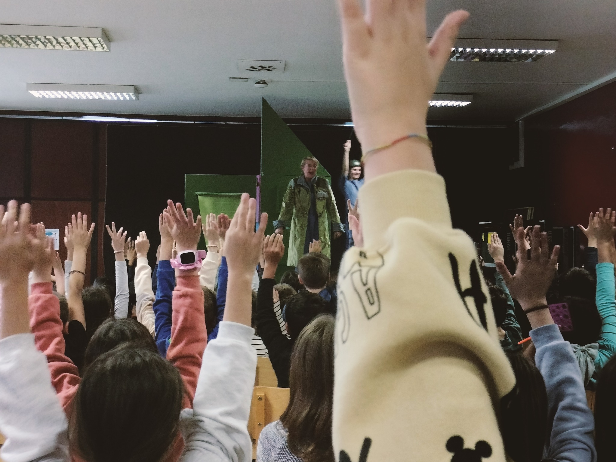 Učenici su pozorno pratili predstavu, a neki od njih nakon predstave su željeli i kratko porazgovarati s glumcima.